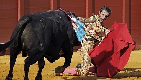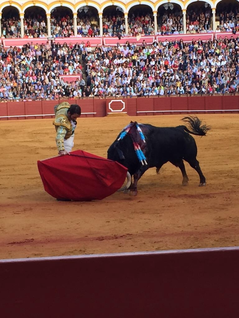 La primera buena noticia es que la plaza estaba aparentemente llena para ver la corrida de Miura que cierra tradicionalmente la Feria. En los últimos años la entrada de esta corrida se había resentido algo, incluyendo la del festivo del lunes el año pasado. Da gusto ver la plaza llena para ver los miuras y también al heroico Manuel Escribano que fue recibido con una ovación al romper el paseíllo y que saludó desde el tercio.